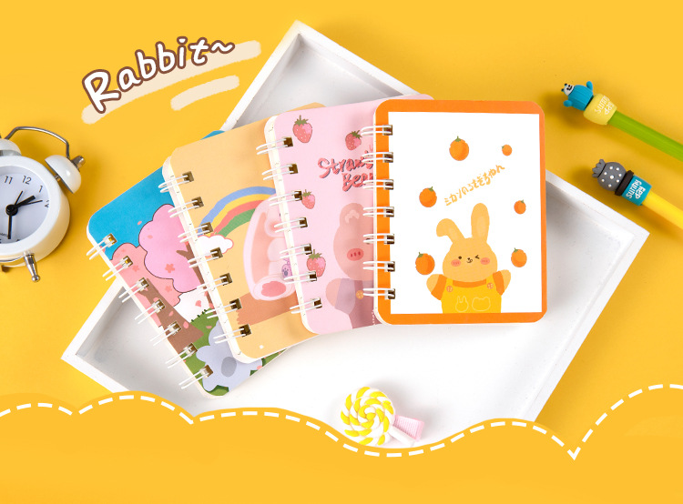 Small Coil Cartoon Notebook Cute and Cute Mini Portable Pocket Notebook Gift for Elementary School Students